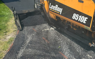 Installing a layer of blacktop over the existing blacktop. A finer material for a more finished look.